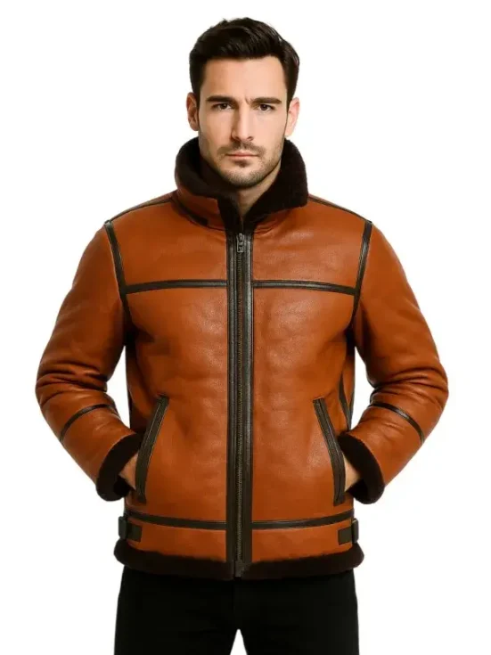America jackets has added B3 sheepskin brown shearling Jackets with the long-lost leather finish once used and added side entry hand warmer pockets to verify this jacket. It has become one of the must-have jackets. Soft supple viscose lining internally makes it more comfortable for wearing. Further also performs Heavy duty with front asymmetrical zipper closure, Side entry hand warmer pockets, Interior pocket, and stand-up style collar. We deliver all our products with the best recognized quick shipping carriers.