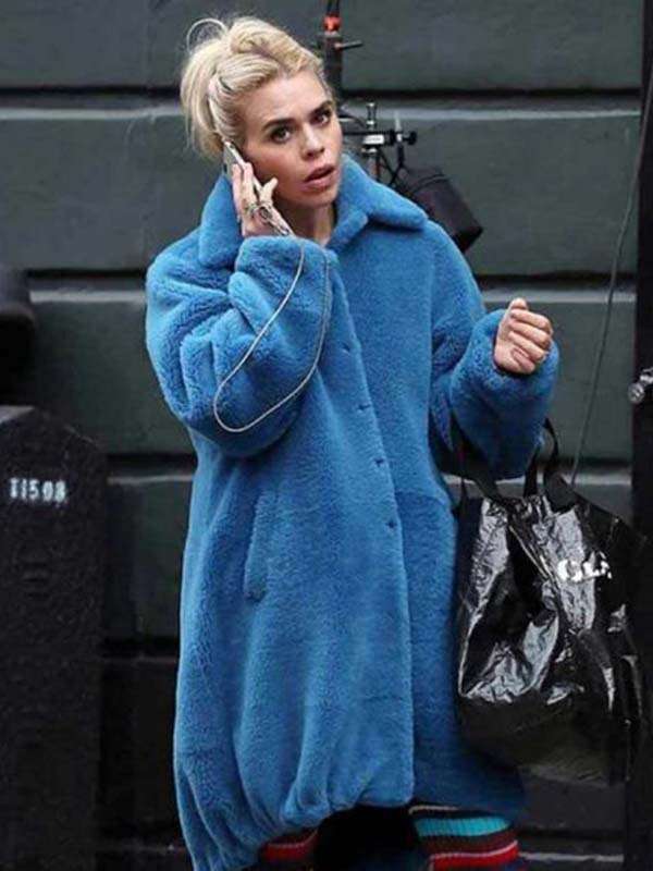 Suzie Pickles TV Series I Hate Suzie Billie Piper Blue Shearling Coat