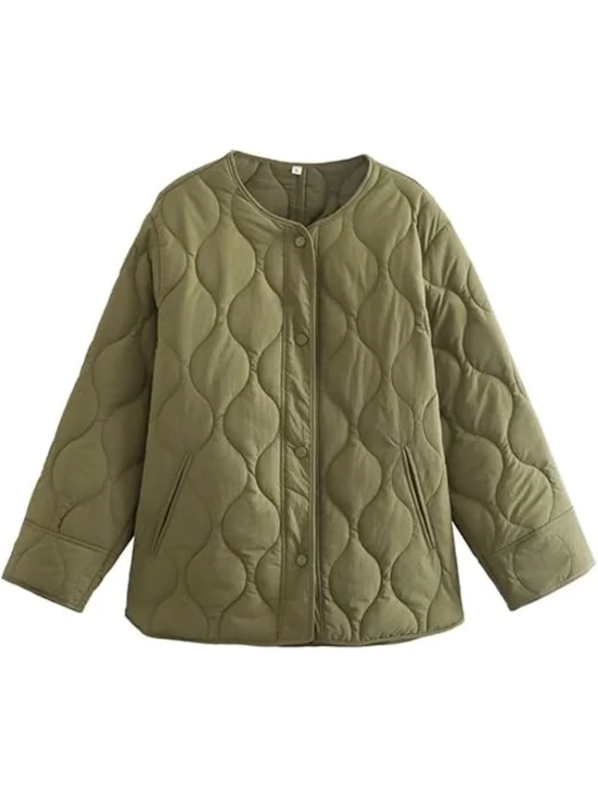 Shop Crew Neck Womens Quilted Green Jacket for a Flattering Fit