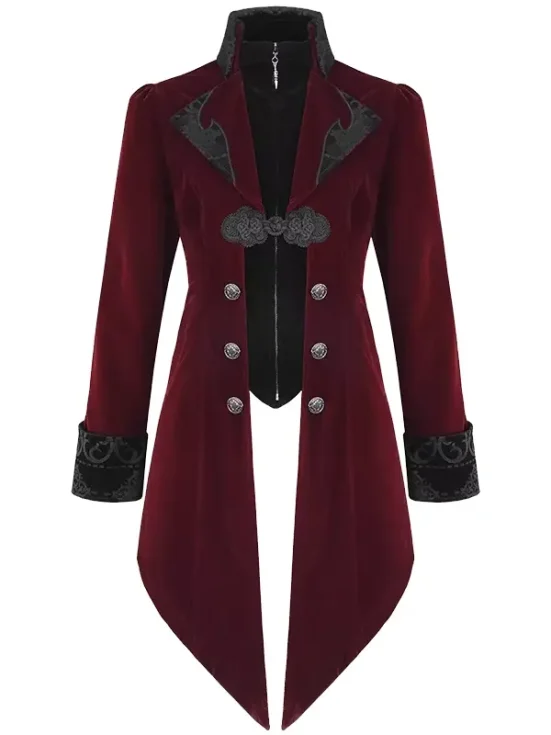 Devil Fashion Men’s Jacket Coat – Red & Black Gothic Steampunk Velvet