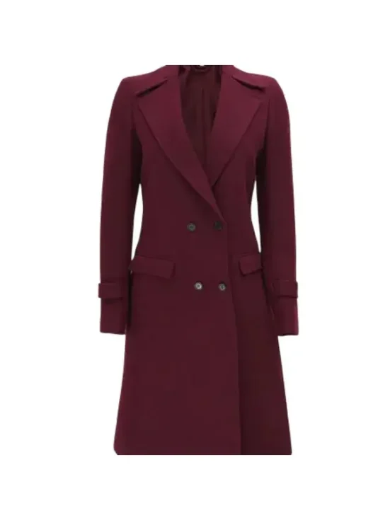 Doris Women’s Double Breasted Maroon Wool Coat