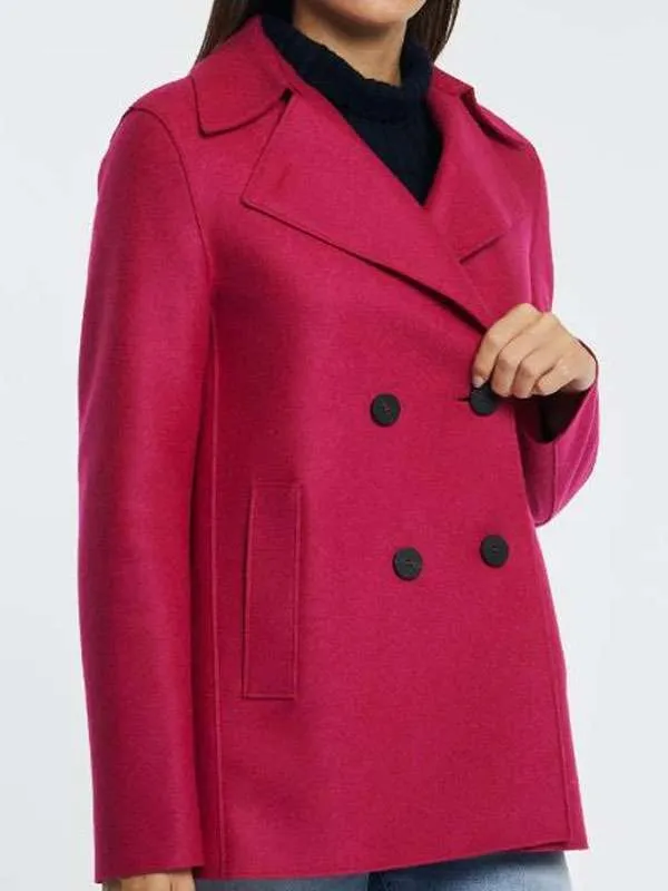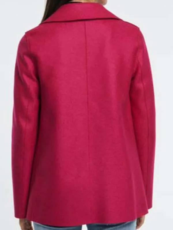 Made from soft wool fabric, this General Hospital Pink Peacoat keeps you warm without being heavy. It has full-length sleeves, a lapel collar, and a classic double-breasted button closure that gives it a timeless, polished look. The inside is lined with smooth viscose, so it feels good to wear all day. Plus, with two handy front pockets and one inside pocket, it’s made to be just as practical as it is beautiful.