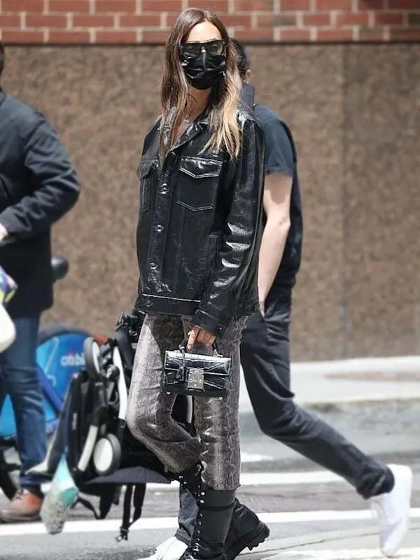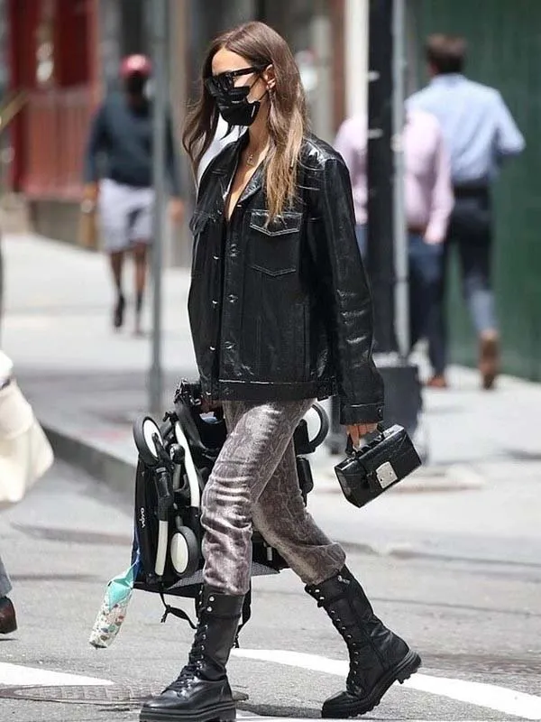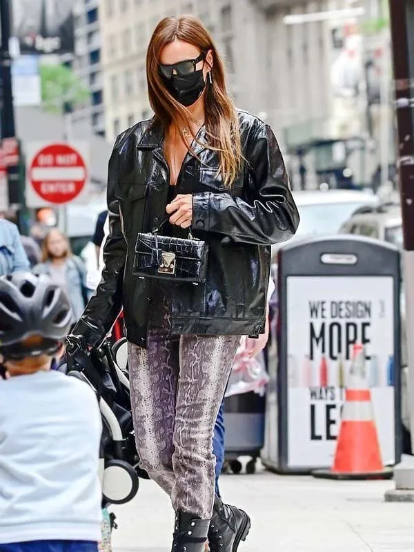 Irina Shayk Black Leather Coat
