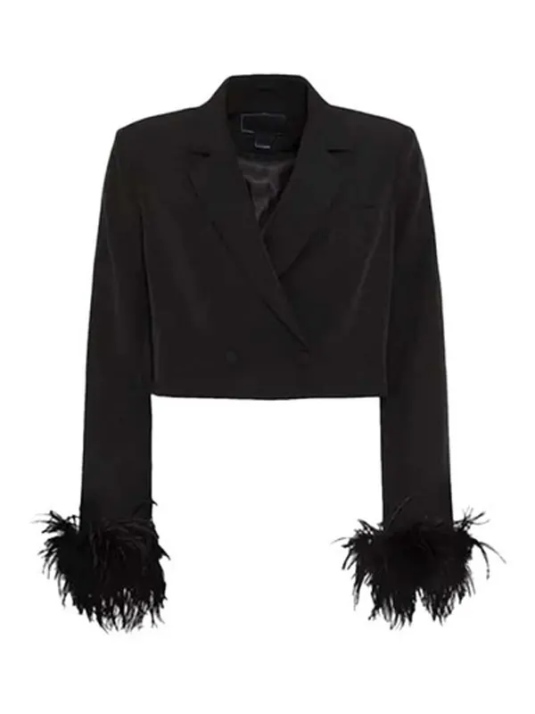John Wick Chapter 4 Taya Miller Feather Cuffs Cropped Blazer