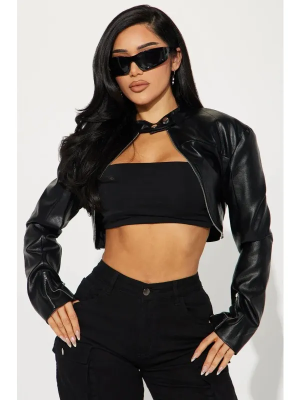 Shop Now Keep The Same Energy Bolero Moto Black Elegance Jacket | America Jackets