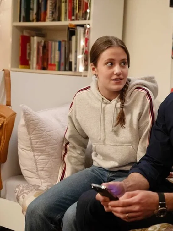 The Law and Order S25 Bridget Riley The Iconic Cream Hoodie is one of those pieces that doesn’t try too hard, but still looks good. It’s inspired by a look seen in Season 25, Episode 16, and honestly, it’s more about comfort than anything else.