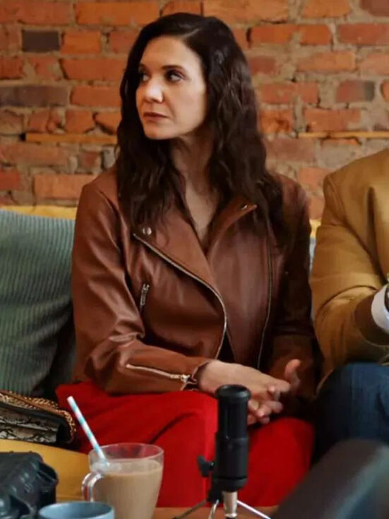 Amy Matysio Love Hacks 2023 Violetta Luna Brown Leather Jacket