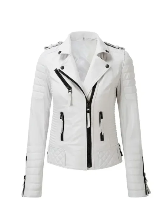 Magnuson White Leather Biker Jacket