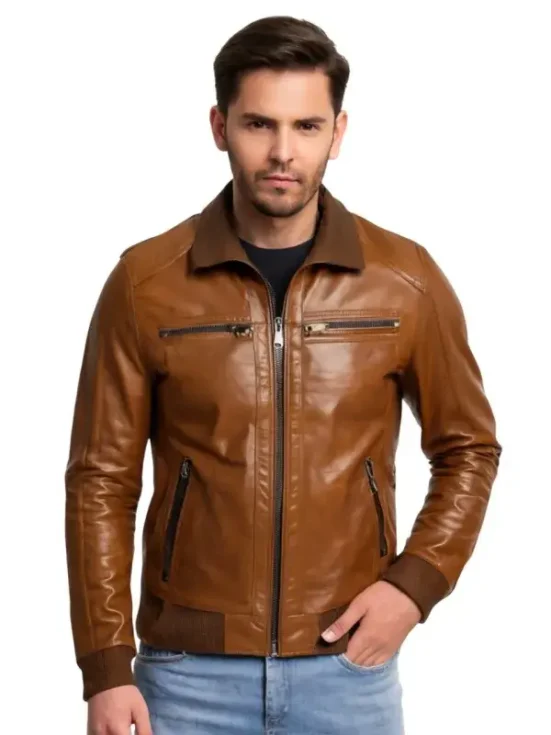2 reviews for Men Bomber Shining Brown Leather Jacket
