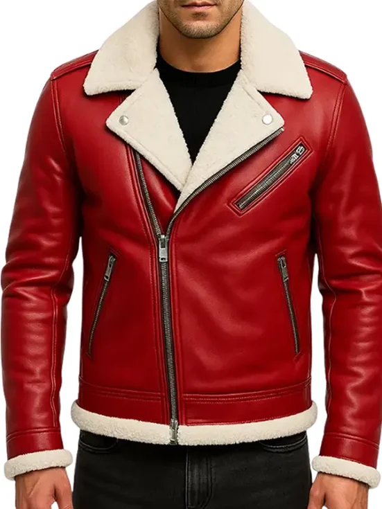 Men Red Shearling Leather Jacket