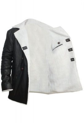 If you are searching for a leather attire that will not only give you coziness and give your protection from cold harsh weather but also looking for an attire that give you stylish and elegant persona, then you don’t need to hunt any more. Just look at this Black shearling fur collar leather coat that is a master piece and one should make this classy piece part of their wardrobe this winter. Double breasted stylish front button closure, with lapel style white fur collar and long slim fit sleeves with white shearling on open cuffs of Men Black shearling leather coat make this classy piece a perfect choice and one should not miss this beautifully crafted. Two waist pockets and two inside pockets are also there with inner shearling lining that give comfortable and cozy feelings all day long. The black shearling Men Leather coat is very simple but very elegant and stylish and add persona. If you also wish to be the center of the party, then you should not miss this master piece.