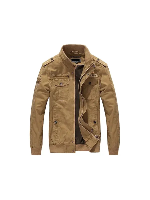 Mens Casual Military Khaki Cotton Field Jacket
