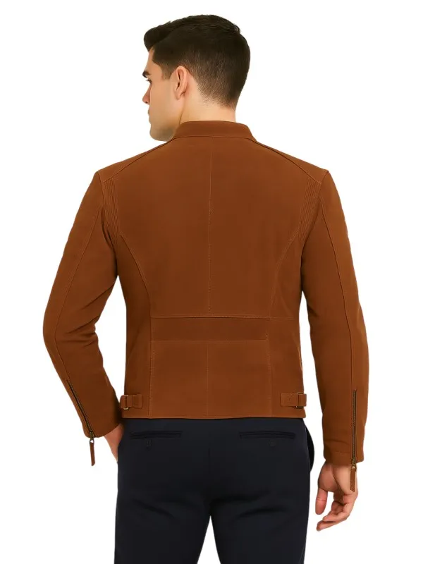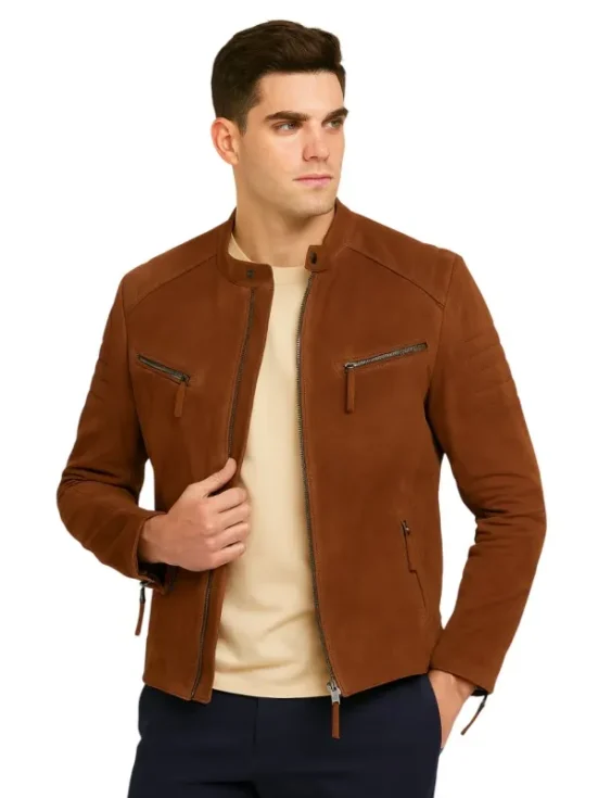 Equipped with functional storage and a Geometric Fit Profile, the Express Suede Biker offers a sophisticated alternative to heavy leather, prioritizing lightweight Material Resilience. It is the authoritative choice for those seeking Mens Express Brown Suede Biker Leather Jacket performance that demands high-fidelity biker aesthetics and archival durability.