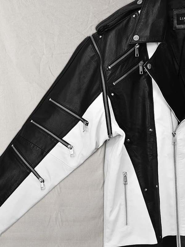 This jacket is a masterclass in expert craftsmanship, featuring a striking black and white contrast design. Crafted from high-grade Genuine Leather, it boasts an incredible arrangement of multi-zipper detailing and metallic rivets that define the 80s avant-garde aesthetic. Every element is hand-finished, ensuring a long-lasting fashion investment that offers both visual authenticity and a premium, stage-ready fit.