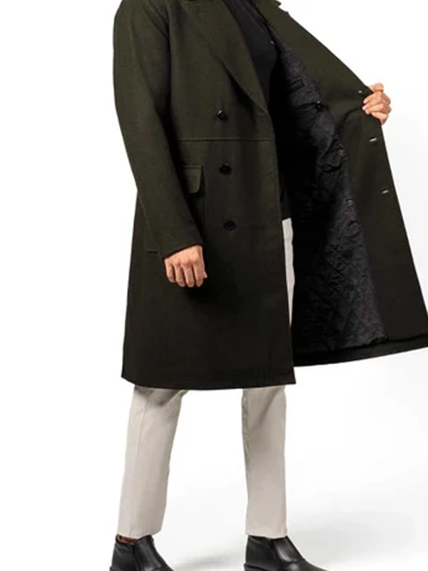 Modern Fit Double Breasted Military Green Trench Coat
