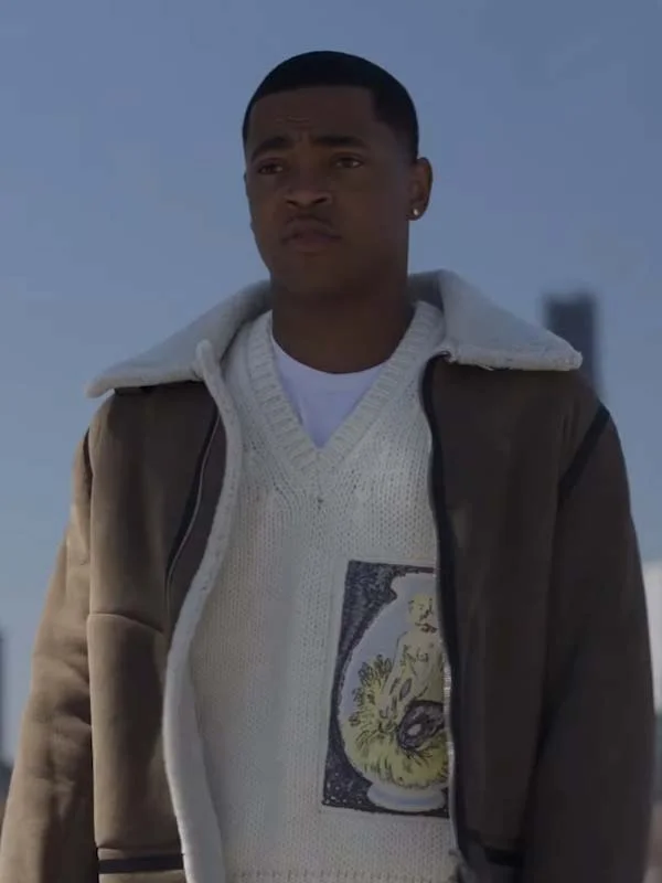 Power Book II Ghost S04 Michael Rainey Jr. Brown Shearling Leather Jacket