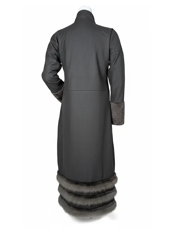The standout feature is the fur trim finishing. The sleeves have fur trim cuffs that add warmth and a rich touch, while the lower area is completed with a fur trim hem that makes the coat look fuller and more luxurious. This is why many people search for a brown fur trim long coat when they want something that feels dressy but still practical for cold days.