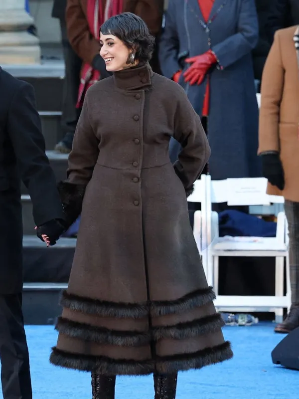 Rama Duwaji Ceremonial Inauguration 2026 Brown Fur Trim Long Coat