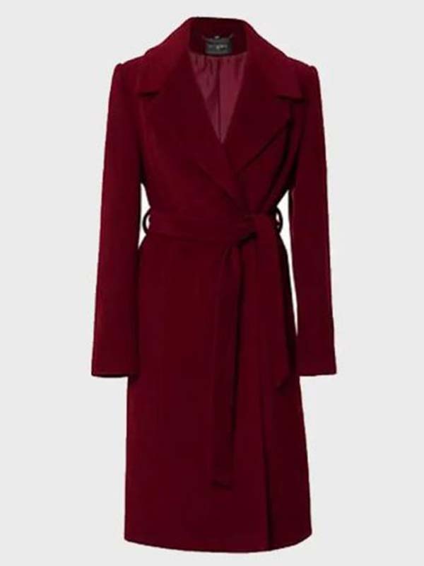 Faye Simulant 2023 Jordana Brewster Maroon Coat