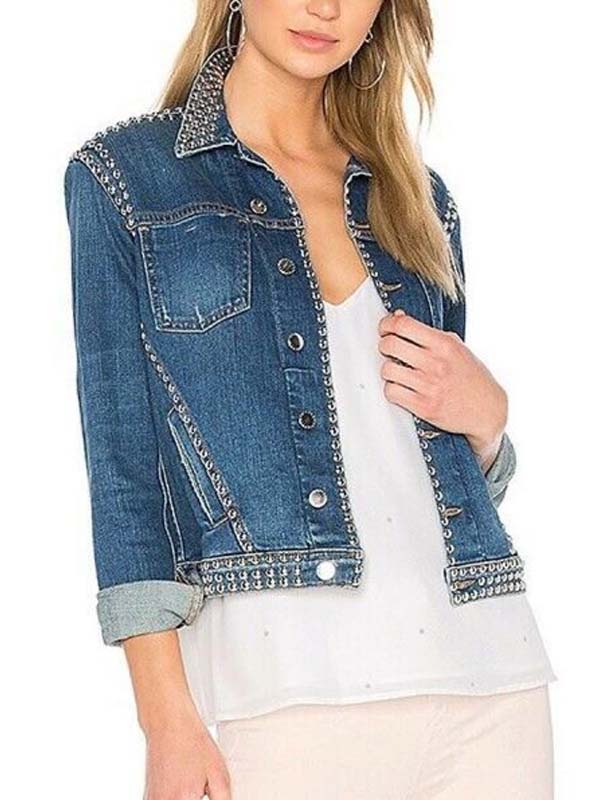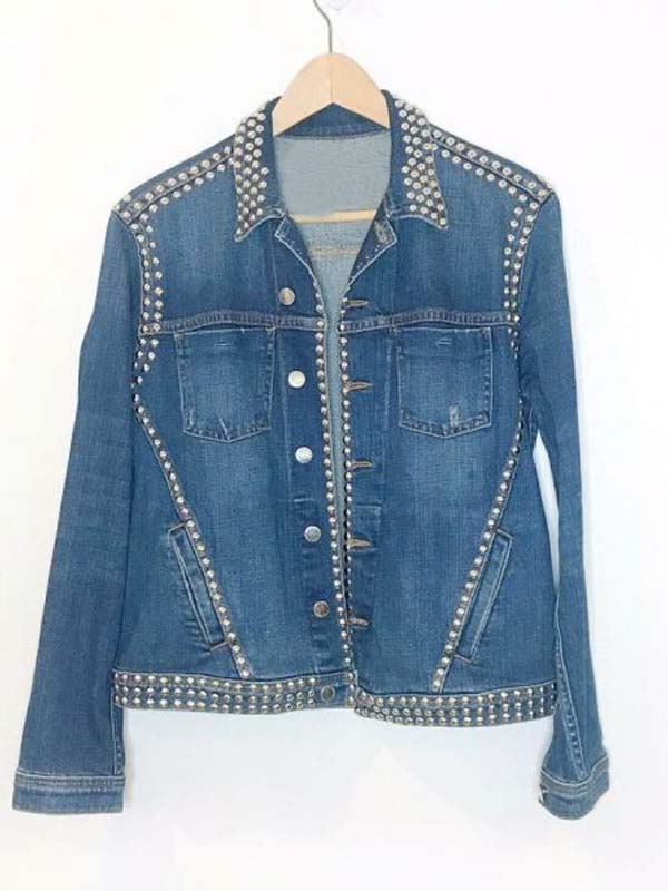 Jenn Yu Spinning Out Amanda Zhou Studded Blue Denim Jacket
