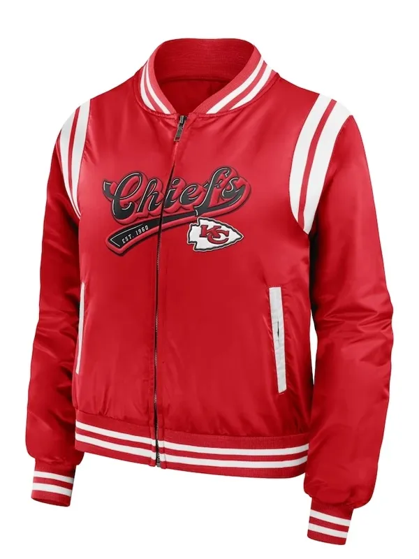 The front zipper closure ensures a secure fit, while the ribbed cuffs and collar add a touch of sporty flair. In a vibrant shade of red, this Chiefs Super Bowl Jacket demands attention and exudes confidence, just like all other Taylor Swift Outfits.