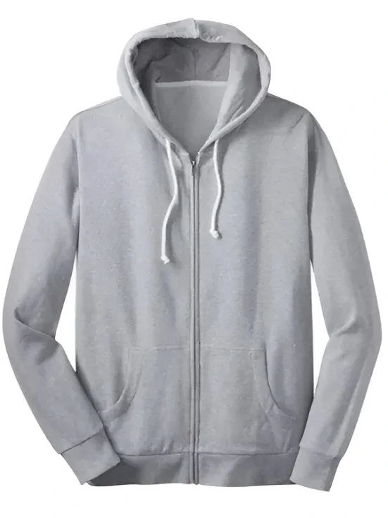 In the next step, the article shown in the picture features some casual everyday details that include an attached hooded-style collar and a front zipper closure, for the signature look of a hoodie. It features full-length sleeves and rib-knitted cuffs that form the chill vibe of the outfit. The two waist pockets enhance the structure while the gray color adds more uniqueness and neutrality to the style.