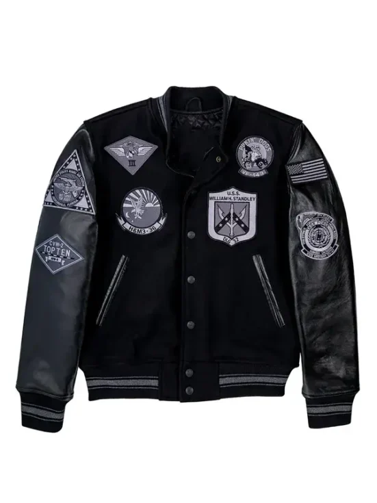 Top Gun Stealth Varsity Jacket | Industrial Grade Wool With Leather Sleeves