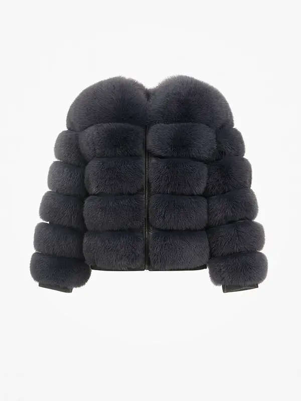 Women Real Vegan Fur Bubble Layer Stylish Fashion Jacket Grey Color