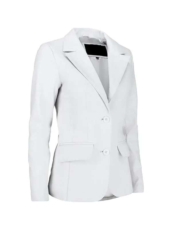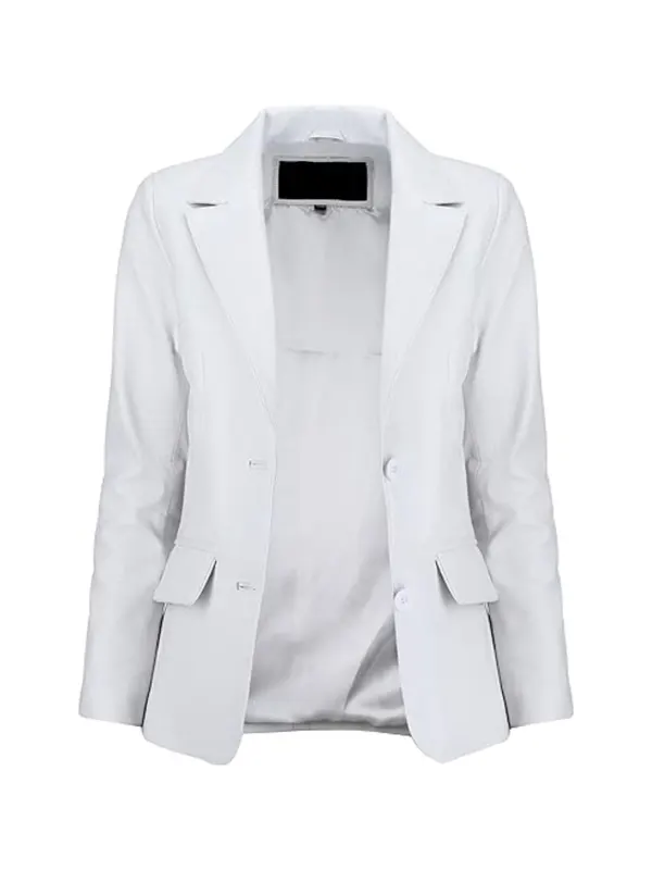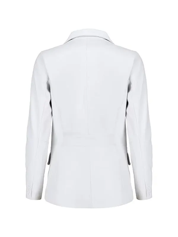 For women who like structure with attitude, this design also fits right into your women’s blazers wardrobe. The smooth finish, neat seams, and sharp shoulders turn this into a go-to white leather blazer for women, whether you style it as a women’s white leather blazer jacket over a slip dress or jeans and heels. It moves easily from office lighting to party photos, so you can enjoy a casual white leather blazer style that still looks refined.