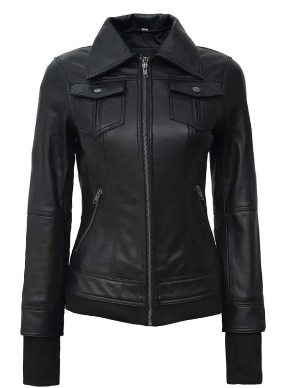 Shop the Sleek Womens Black Leather Bomber Jacket With Removable Hood That Define Edge and Style