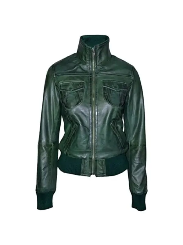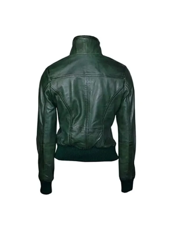 Women’s Green Bomber Leather Jacket