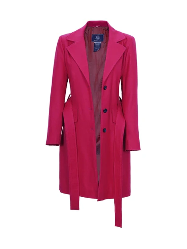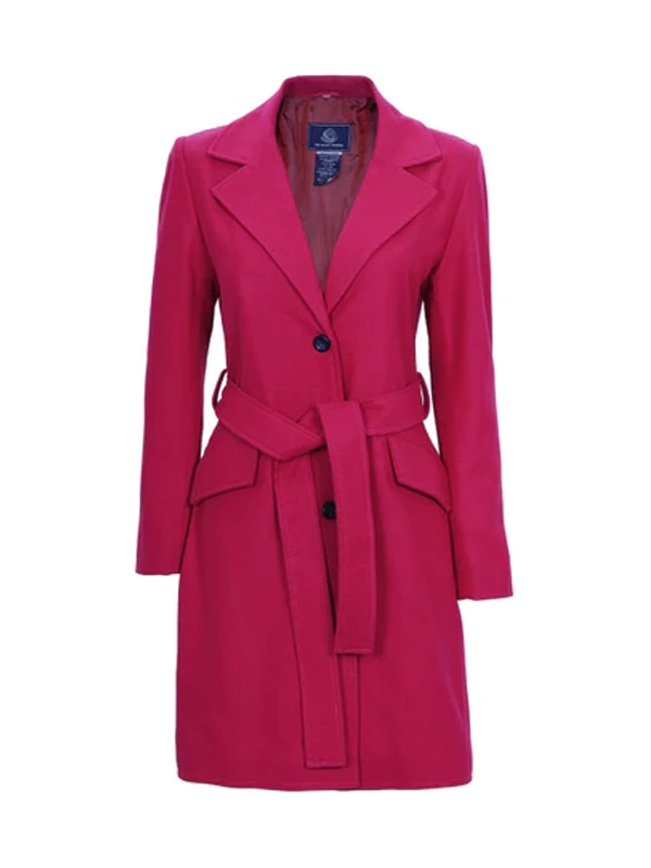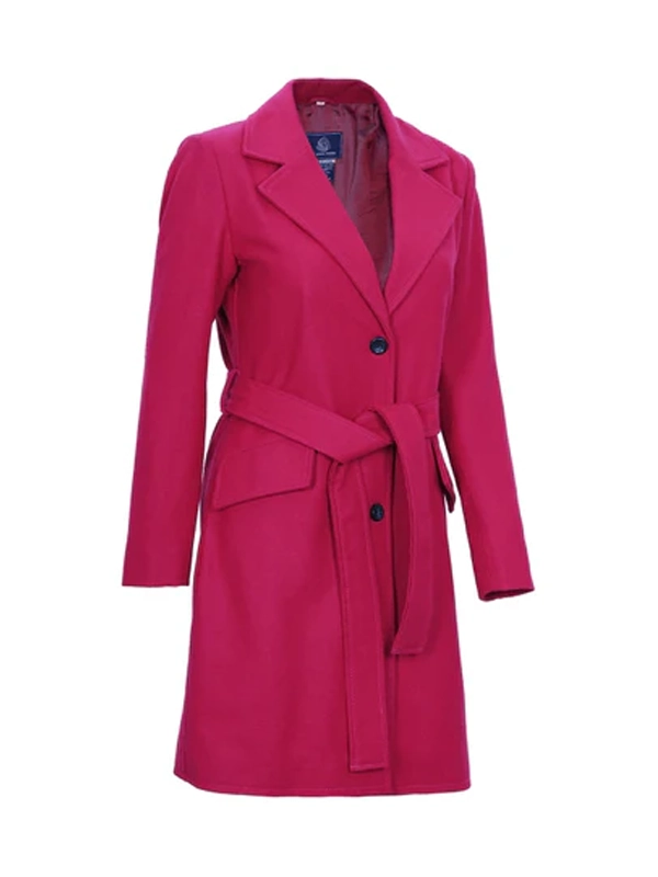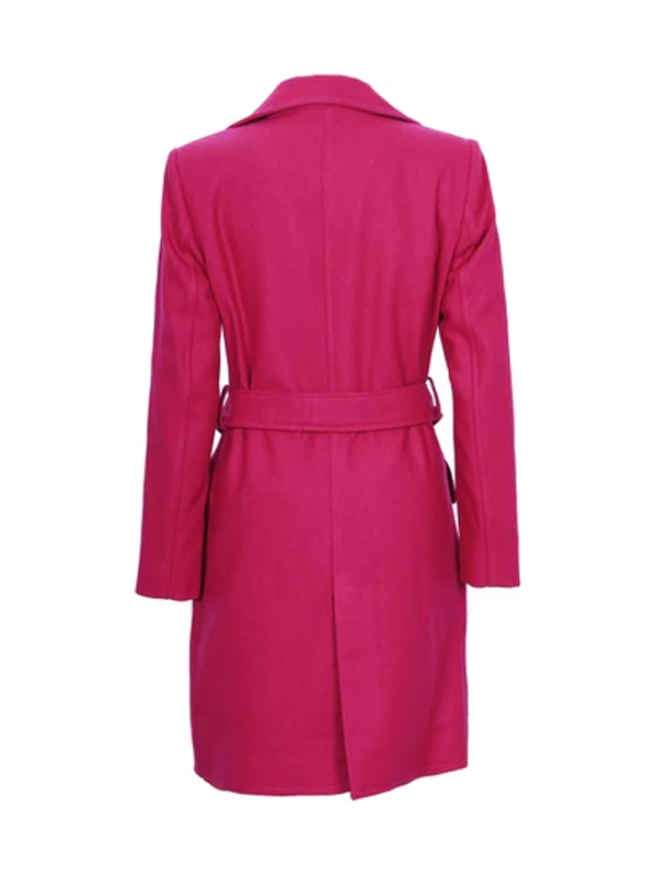 Womens Pink Notch Lapel Wool Wrap Coat