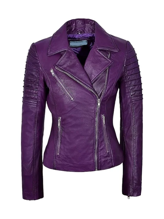 Womens Purple Leather Biker Jacket